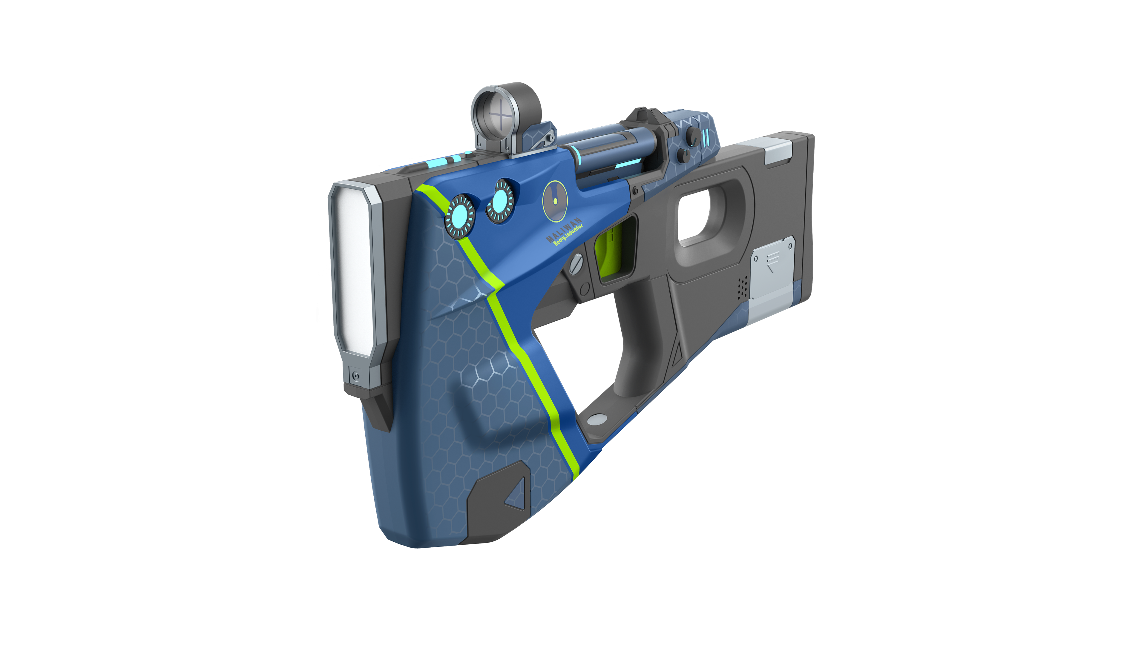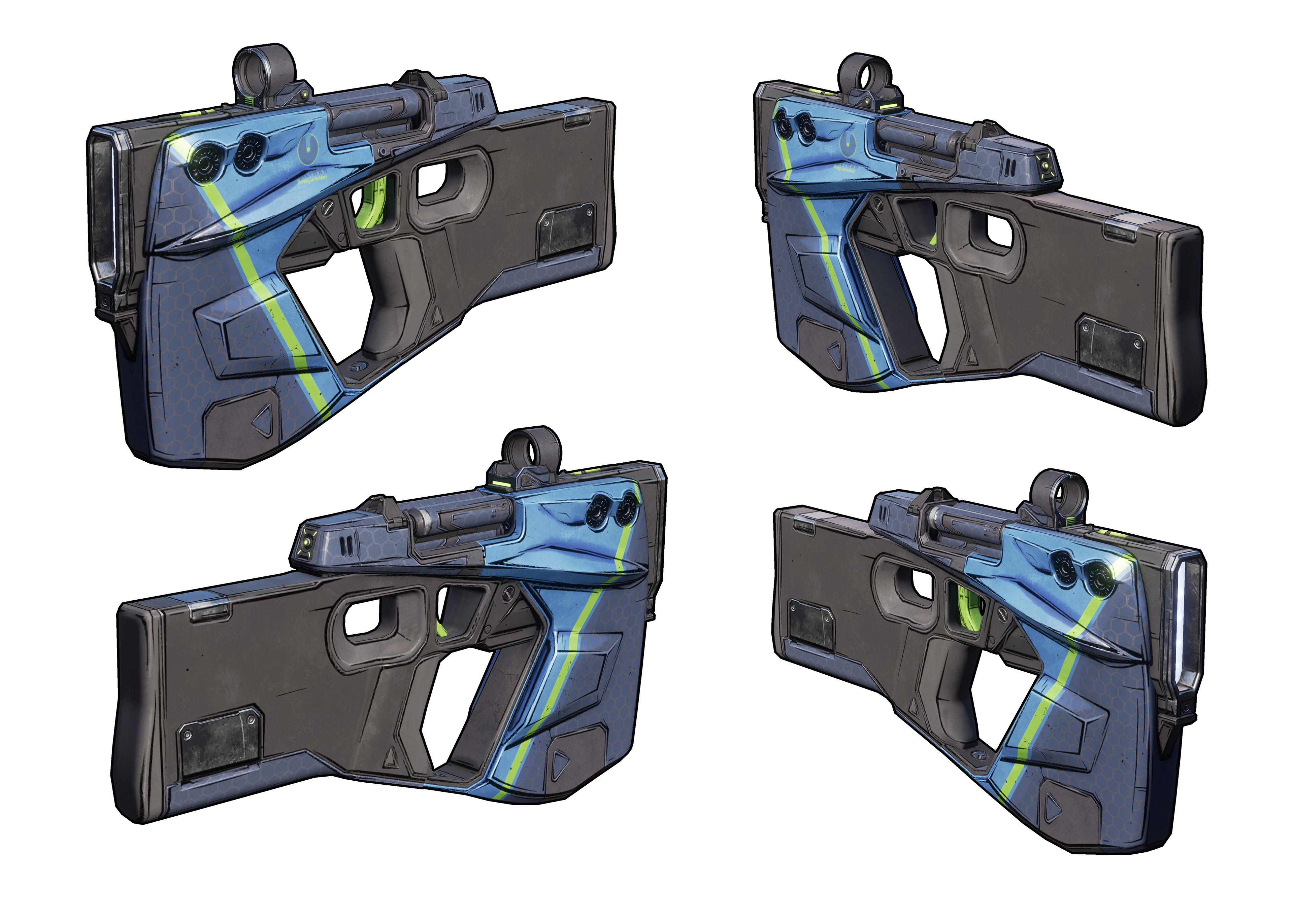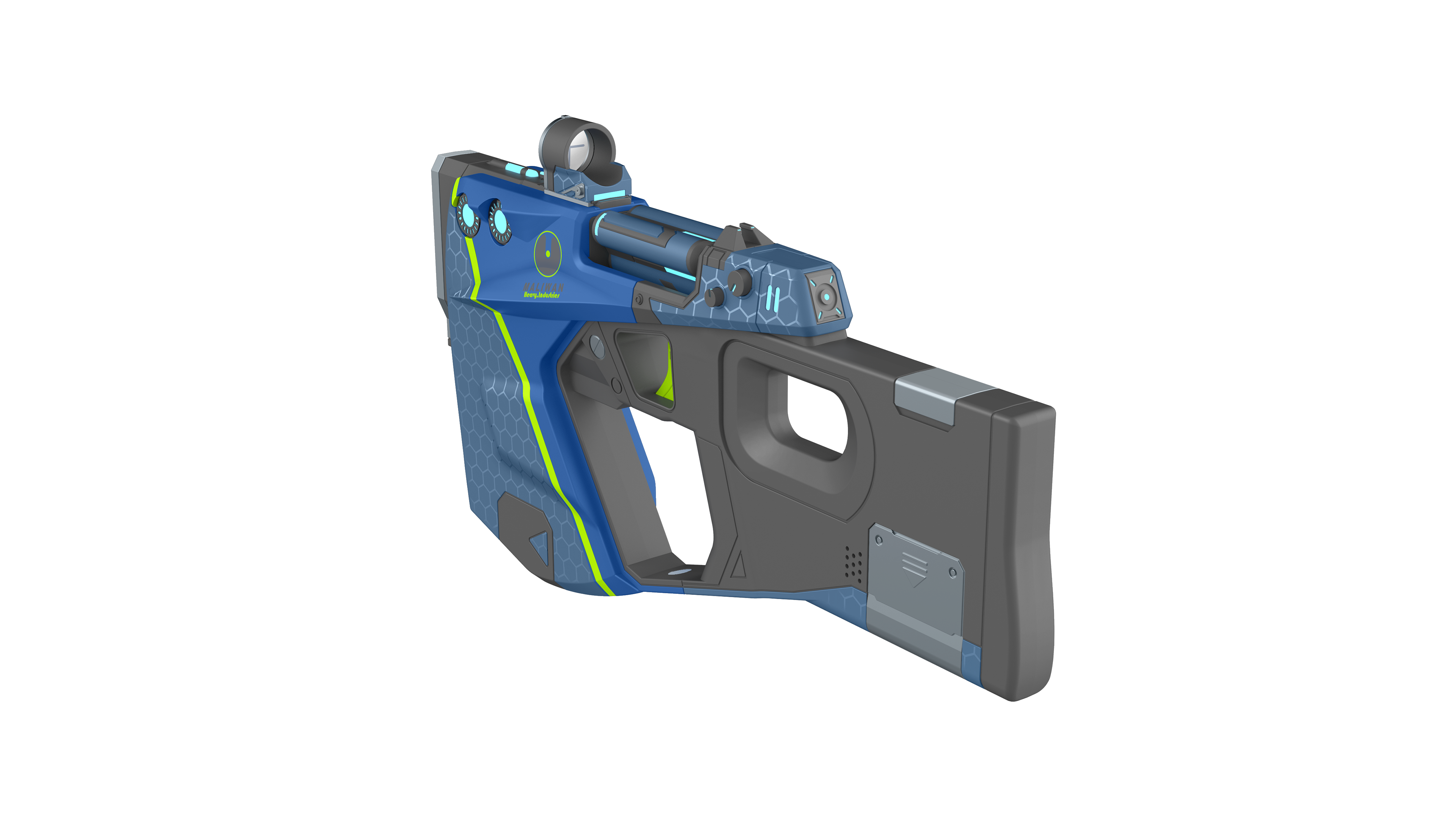 In game model supplied by licencor. This Maliwan Pistol was chosen from a handful of different weapon styles from Borderlands.