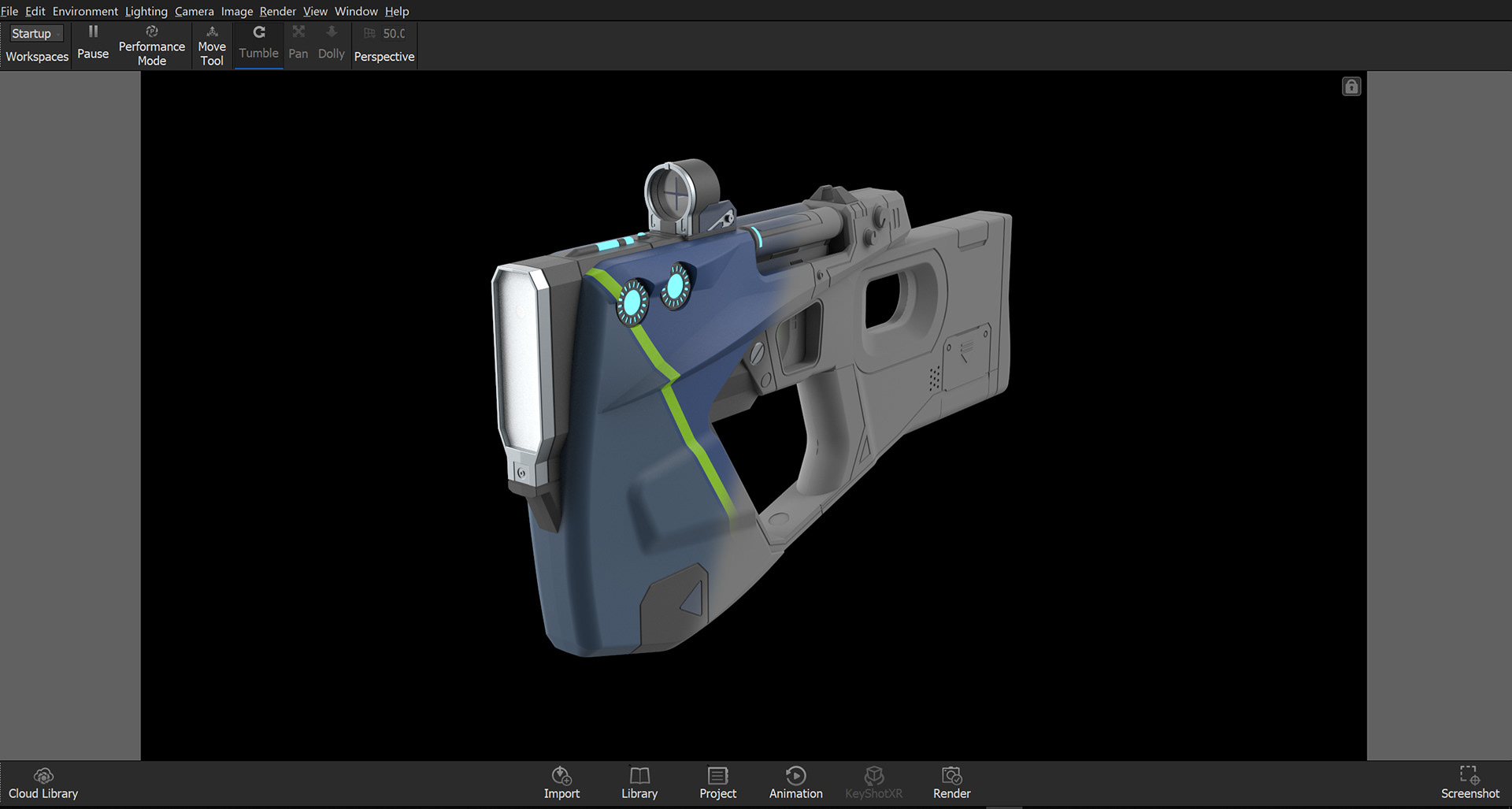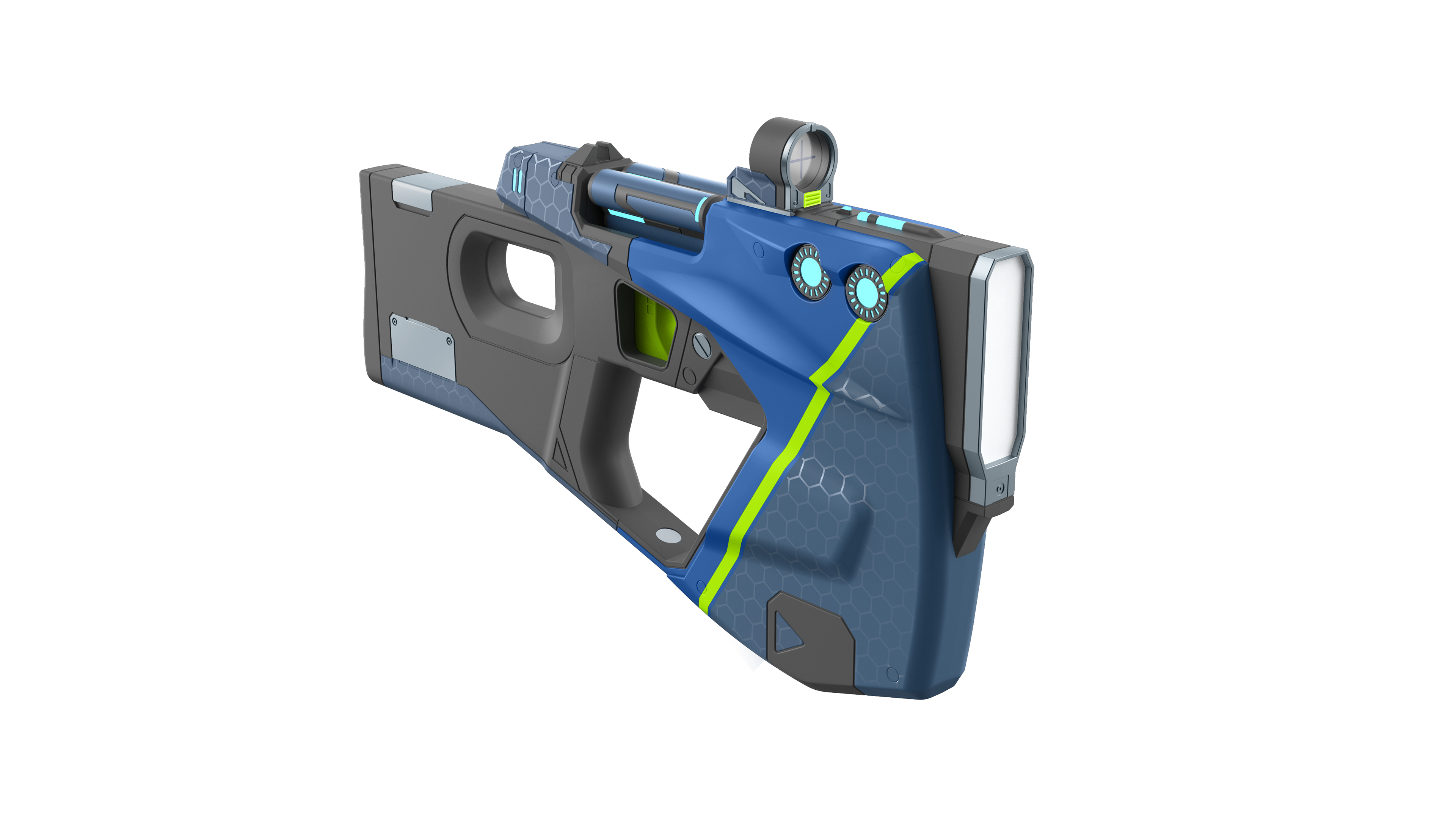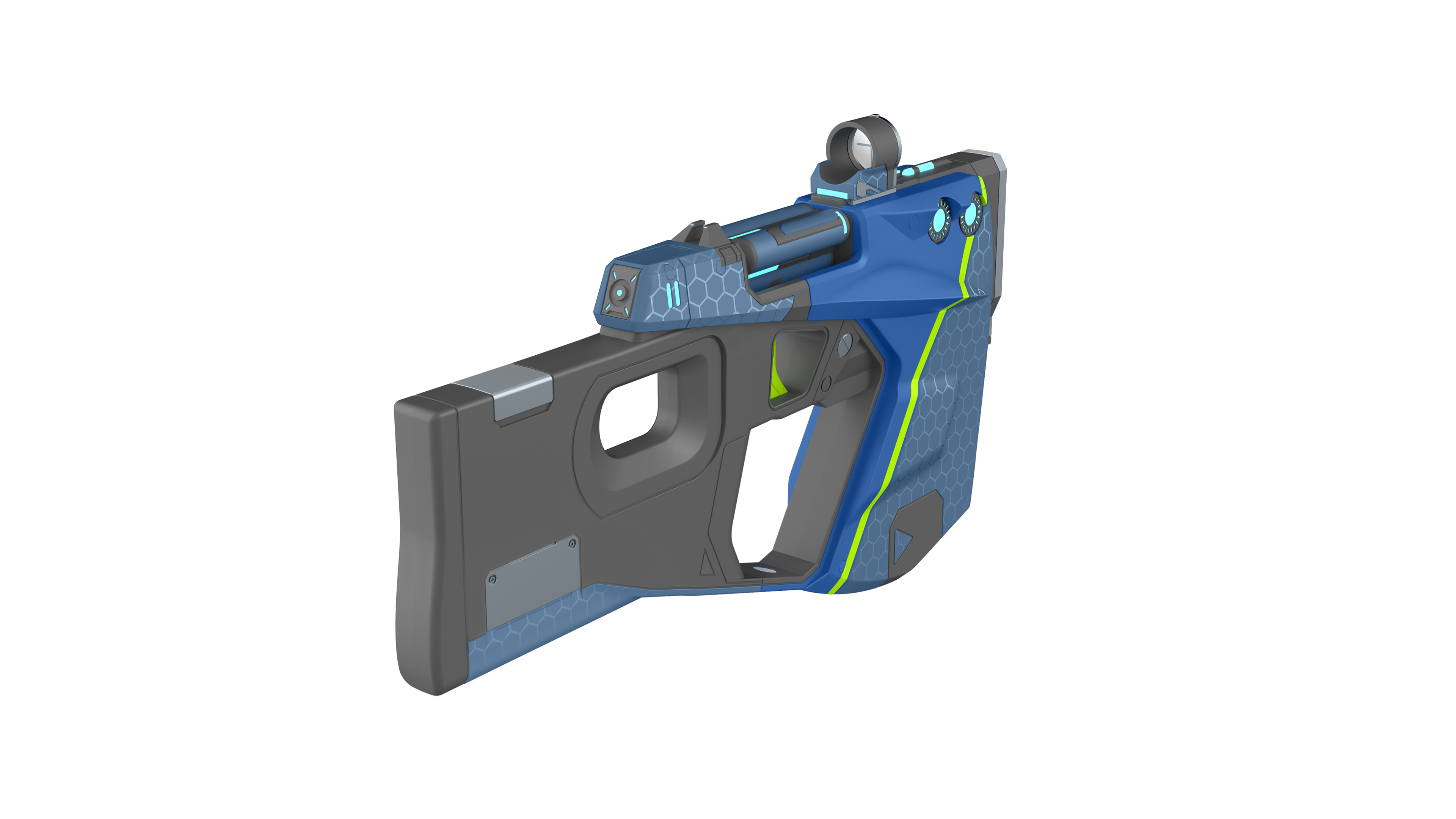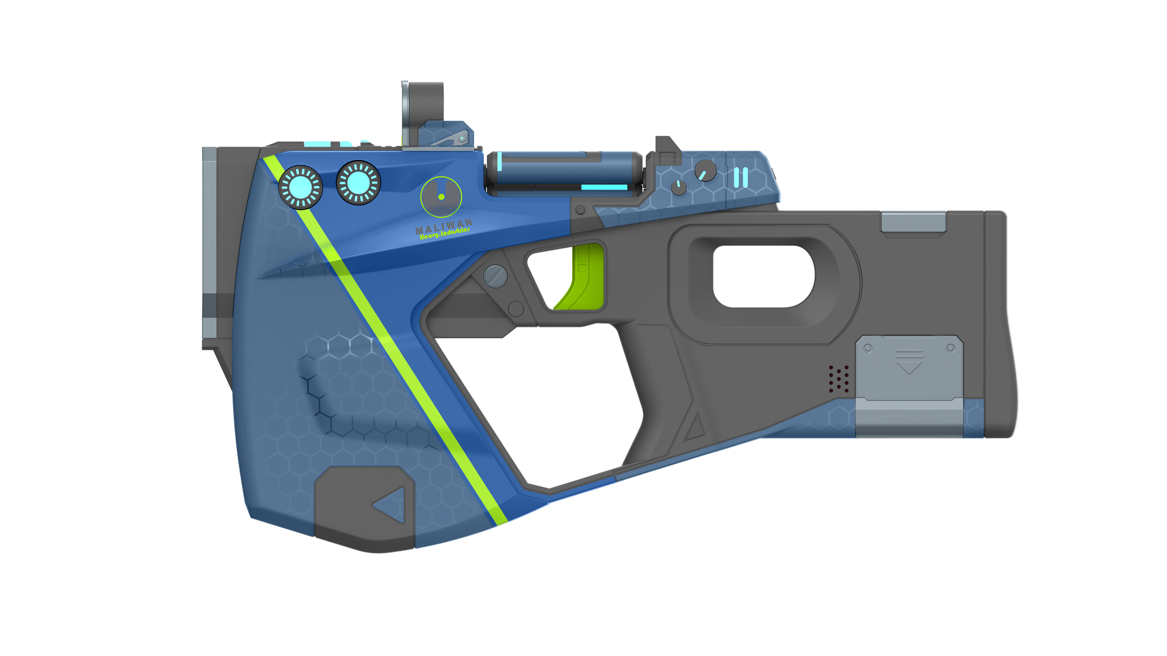 In game model supplied by licencor. This Maliwan Pistol was chosen from a handful of different weapon styles from Borderlands.