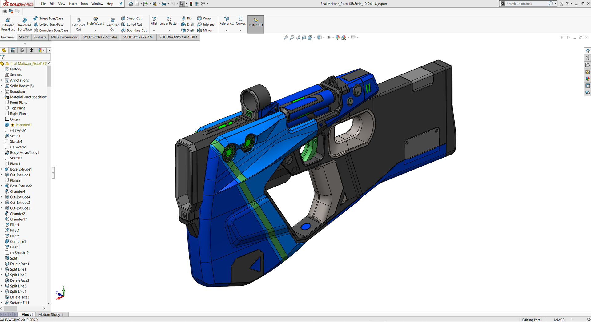3D Print of this replica weapon was a crucial part of the process of making sure size and scale was accurate.