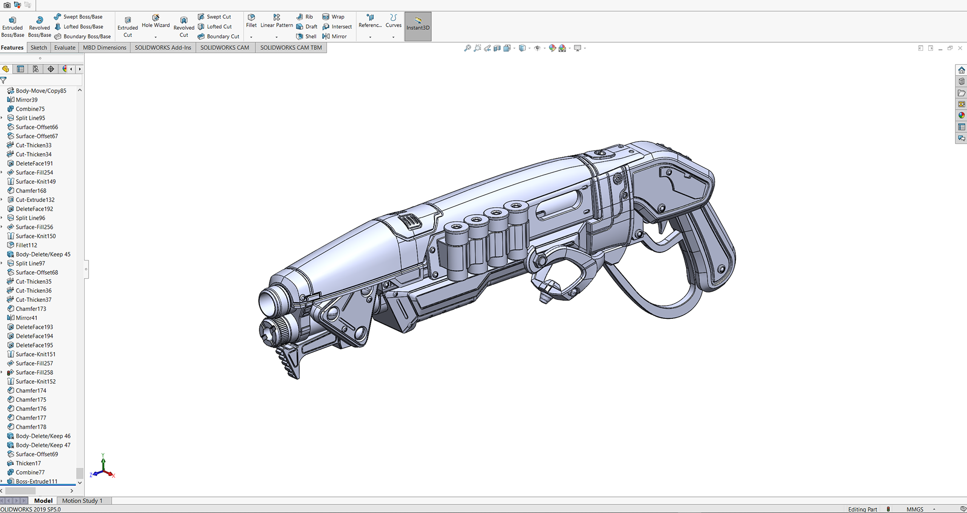 This process was necessary as scale was a major issue. Ultimately the gun was scaled down uniformly.
